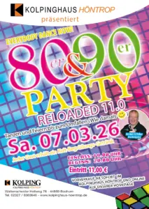 80er & 90er Party Sa. 07.03.2026 80er & 90er Party Einlass: 19:00 Uhr Beginn: 20:00 Uhr Eintritt 11,00 € Weiterlesen » 7. März 2026